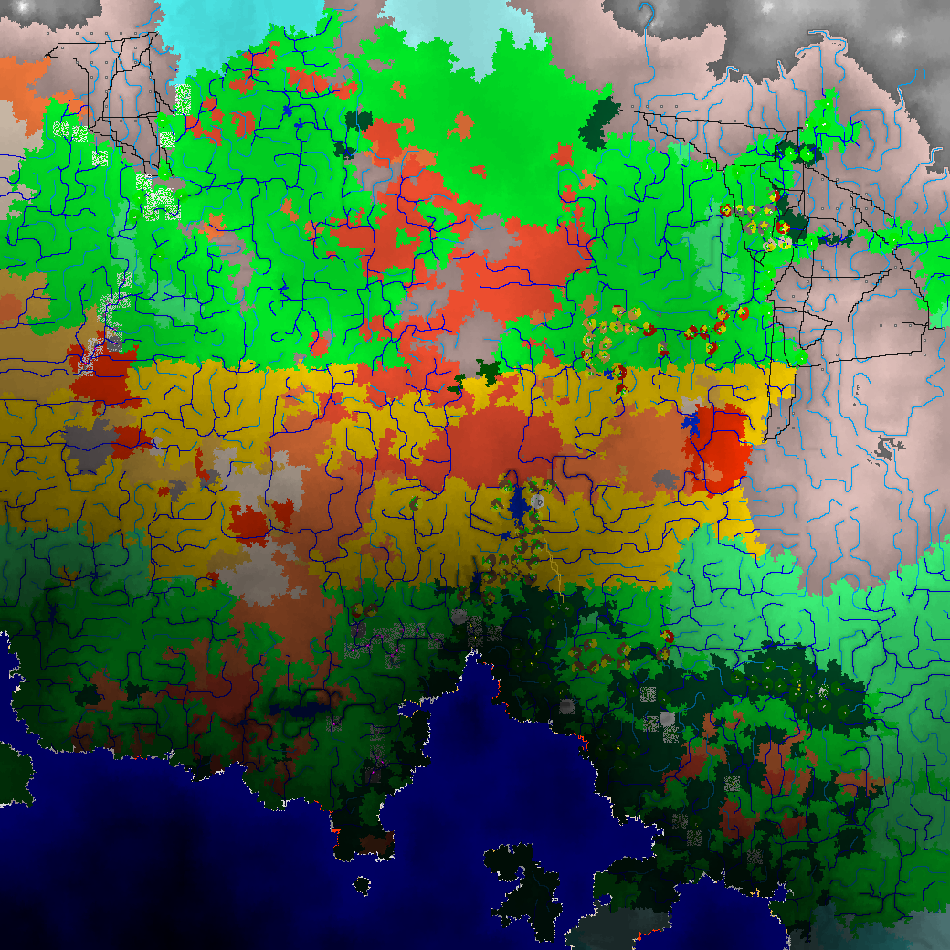 This world took over a week to generate and required over 7GiB of RAM! Unfortunately it appears to be too big for the Legends Browser to load, however it does load (albeit slowly) in Dwarf Fortress itself. Playing the world is practically impossible though, saves take forever and the game is prone to crashing.